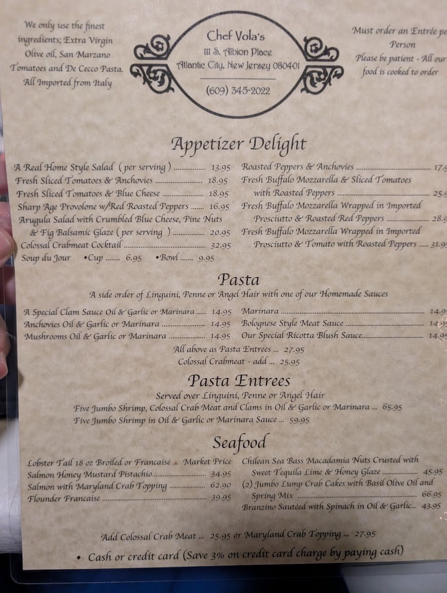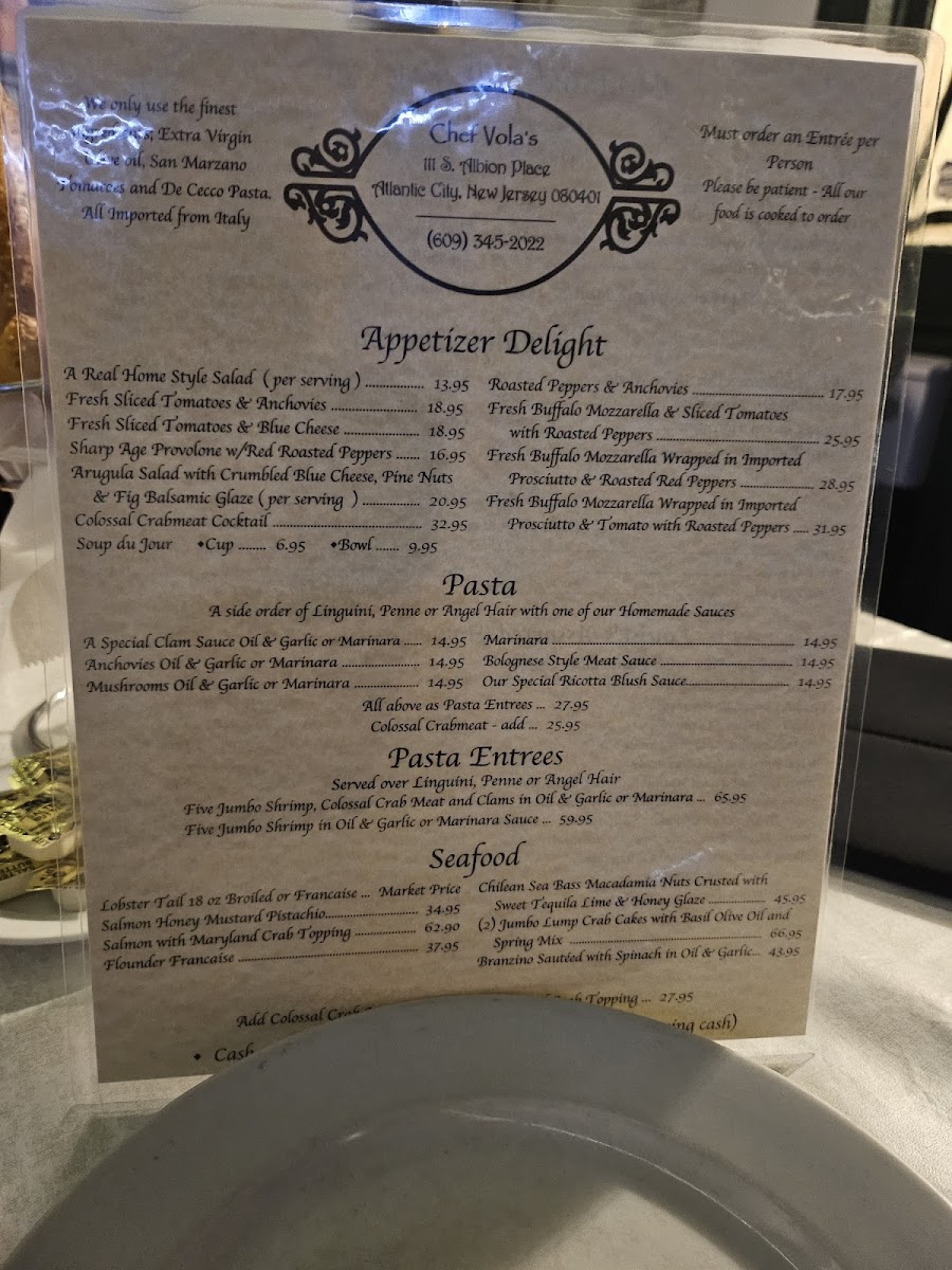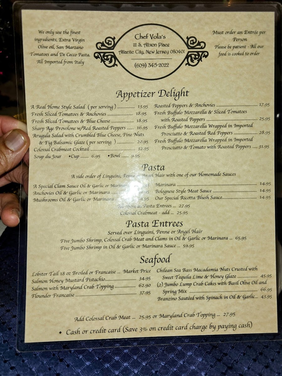 Chef Vola’s offers a thoughtfully crafted menu that reflects a classic Italian dining experience with a focus on rich, comforting dishes. The menu is not hurried but rather invites diners to take their time savoring each carefully prepared course in the restaurant’s warm and intimate atmosphere.